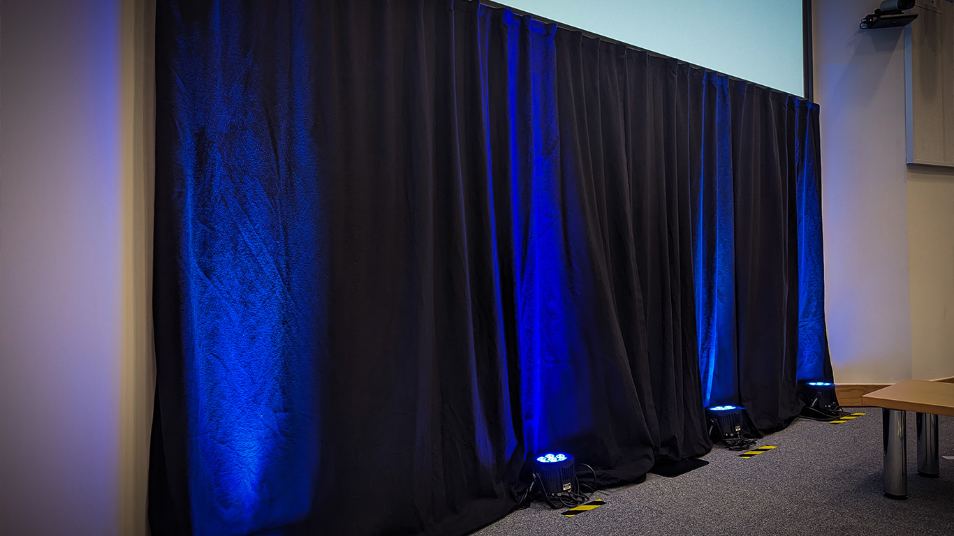 Adding a background with lighting helps your speakers stand out